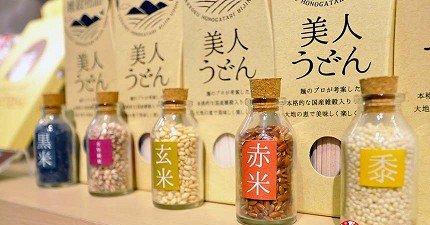 「美人烏龍麵」則推薦給喜愛麵食或是想走健康路線的朋友們。烏龍麵中含有日本國產的雜谷,包括含有花青素多酚的黑米、膳食纖維的糯米、豐富礦物質的玉米黍、丹寧多酚的紅米,以及富含B群和磷酸的玄米等5種。不同風味的烏龍麵只要簡單調味,就能變化出多種料理!