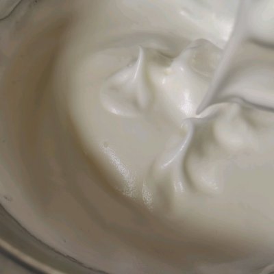 5、打成這種狀態,可以再軟一點,加三分之一到蛋黃糊中z字形攪拌,最後再全部加入蛋清中z字攪拌均勻。
